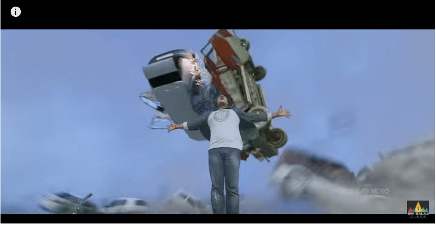 עליתם על זה? הסצנה פשוט מועתקת מתוך "נשק קטלני 4" שיצא ב1998. אבל למה להגיד העתקה? כנראה שהבמאי Trivikram Srinivas (בהצלחה עם ההגייה של השם הזה) "השפע" ו"קביל השראה". הנה הסצנה המקורית של נשק קטלני שדווקא נראית אמינה יותר. תשפטו בעצמכם: