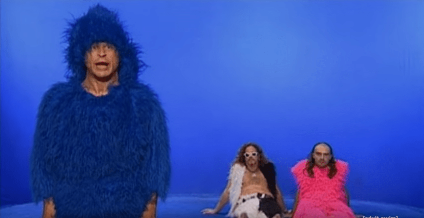 מי אמר שצריך להבין מה אומרים? סרטון בשפה לא מובנת שמשלב בחור מוזר בחליפה ועניבה, בובה של חד קרן ומרק חם.
